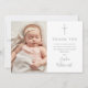Un élégant script signature argenté Baptême ou carte de remerciements de baptême. Personnalisez avec votre photo spéciale et un message de remerciement en lettres argentées chic. Conçu par Thisisnotme©