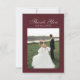Express your gratitude in timeless style with this Elegant Script Burgundy Red Flat Thank You Card. Featuring refined calligraphy on a burgundy background, this note card is the perfect way to thank guests, family, or vendors after your celebration. Personalize with your names or message to create a polished, heartfelt keepsake that reflects the sophistication of your formal wedding.