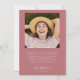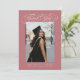 Chic graduation thank you card with graduate photo, elegant script, and space for school name and class year. Background color is pink.