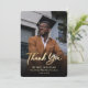 Carte De Remerciements Élégant Script moderne Black Gold Photo Graduation