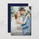 Élégant Script Modern Marine Blue Mariage Photo Carte de remerciements.