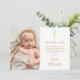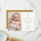 Un élégant script signature or Baptême ou carte de remerciements de baptême. Personnalisez avec votre photo spéciale et merci ensemble de messages en lettres or chic. Conçu par Thisisnotme©