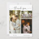 Voici notre "Elegant Script Photo Carte de remerciements" - un chef-d'oeuvre conçu pour capturer l'essence de la gratitude avec une touche d'élégance moderne. Ce carte de remerciements mariage est plus qu'une expression de remerciements ; c'est une oeuvre d'art qui résume magnifiquement la joie et les souvenirs de votre journée spéciale. Plongez-vous dans la sophistication de l'écriture élégante, minutieusement conçue pour ajouter un charme intemporel à votre message de remerciement. Le design moderne se marie harmonieusement avec les éléments classiques, créant une carte qui résonne avec les épouses recherchant un parfait mélange de tradition et de style contemporain. La palette de couleurs est soigneusement conçue pour compléter l'élégance du mariage, avec des teintes subtiles et sophistiquées qui rehaussent l'attrait visuel. L'inclusion de votre photo de mariage chère ajoute une touche personnelle, transformant chaque carte en souvenir que vos invités apprécieront. La typographie du script ne fait pas que transmettre votre gratitude mais ajoute aussi une touche de raffinement à la conception globale. Chaque détail est soigneusement étudié pour s'assurer que la carte n'est pas seulement une note mais une représentation visuelle de l'amour et de l'appréciation que vous ressentez pour ceux qui ont partagé votre célébration. Imaginez votre photo mariage gracieusement ornée sur ces cartes, créant une impression durable des beaux moments que vous avez partagés avec vos proches. La carte devient un souvenir, permettant à vos invités de revivre la magie de votre jour de mariage chaque fois qu'ils la regardent. Ce Carte de remerciements de photo de script élégant témoigne de l'idée que la gratitude peut être exprimée avec des mots et des visuels. C'est un choix parfait pour les épouses qui apprécient la combinaison de l'esthétique moderne et de l'élégance intemporelle, ce qui en fait une carte qui complète magnifiquement toute l'expérience mariage. Choisissez cette carte pour transmettre vos remerciements sincères d'une manière qui va au-delà des mots, laissant une impression durable sur vos invités. Avec son mélange d'élégance, de typographie de script et la touche personnelle de votre photo mariage, ce carte de remerciements devient une partie chère des souvenirs que vous créez ensemble.