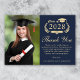 Carte De Remerciements Élégant Script Photo Blue Gold Graduation