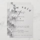 A stylish, minimalist black and white wedding or engagement invitation featuring "She Said Yes" script, elegant floral accents, and event details for Olivia and Jonny's big day (Saturday, 14th September 2024, at 2 pm).