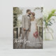 Ce carte de remerciements photo mariage est doté d'un élégant script de typographie recouvert d'espace pour 2 photos et d'un message personnalisé sur le dos. Cliquez sur le bouton personnaliser pour plus de flexibilité dans la modification du texte ou le déplacement des graphiques! Des variantes de cette conception ainsi que des produits de coordination sont disponibles dans notre boutique, zazzle.com/store/doodlelulu. Contactez-nous si vous avez besoin que cette conception s'applique à un produit spécifique pour créer votre propre article de correspondance unique! Merci tellement pour voir un DoodleLulu par 2 june conception de bogues!