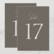 Add refined elegance to your wedding reception with this minimalist taupe table number sign. Featuring a modern serif number paired with a delicate script title, this timeless design creates a sophisticated look that complements neutral, ivory, and fine-art wedding décor. The clean layout ensures excellent readability for guests while maintaining a stylish, luxury aesthetic perfect for estate, garden, and black-tie weddings. Ideal for reception table settings, this elegant table number coordinates beautifully with minimalist wedding stationery suites and modern neutral wedding themes.