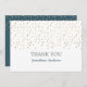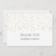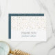 Simples et élégantes, ces cartes de remerciements personnalisées sont le moyen parfait d'envoyer vos remerciements sincères à vos amis et à votre famille pour avoir assisté à la mitzvah bar de votre fils ou au bat mitzvah de votre fille. Le design comporte des gouttes d'or sur l'avant avec du texte rose et gris qui est personnalisable. Le dos est recouvert d'un ton turquoise foncé assorti, de gouttes d'or et de deux zones de texte qui peuvent être customisées avec votre propre message et signature.