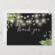 Un élégant carte de remerciements à cordes botaniques d'eucalyptus, personnalisé avec un message spécial sur le dos sur un arrière - plan noir. Conçu par Thisisnotme©