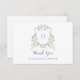 Elegant White Floral Dusty Blue Wedding Crest Thank You Card. White Flowers Greenery Monogram Wedding Thank You Card