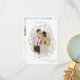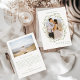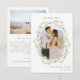 Découvrez le charme intemporel de notre mariage sophistiqué du printemps et de l'été, merci aux cartes photos, orné d'une couronne entrelacée de fleurs blanches (roses et pivoines) et de feuilles verdoyants. Avec deux instantanés enchanteurs des jeunes mariés, ces cartes rayonnent de grâce et d'élégance. Un script de calligraphie minimaliste simple ajoute une touche de style.