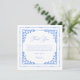 La carte de remerciement de douche de mariée en carreaux bleus et blancs dégage une élégance avec son mélange d'éléments de design moderne et de charme méditerranéen. Les motifs de carreaux peints à la main ornent les bordures, créant un cadre captivant pour les détails de l'événement. Des accents d'aquarelle délicats évoquent un sentiment de tranquillité et de beauté, fixant le ton parfait pour une célébration inoubliable.