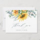 Élégante Carte de Remerciement de Fête de Mariage Champêtre Florale avec bouquet de tournesol et d'eucalyptus à l'aquarelle peinte à la main et calligraphie moderne. Cliquez sur le bouton d'édition pour personnaliser ce design.