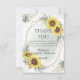 Carte De Remerciements Élégante Fête de Mariage Fleur de Soleil et Feuill
