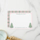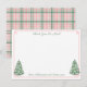 Classique carte de remerciement personnalisée ou conception de carte de note avec un arbre de vacances orné de boules roses et blanches et d'une bordure rose en "Clé grecque". Le verso présente un fond tartan rose et vert. Montré ici comme une carte de remerciement pour une douche de mariée ou une baby shower, mais tout le texte peut être modifié pour s'adapter à votre événement [pourrait également être une carte de note].