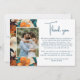 Élégant Carte de remerciements photo Mariage à fleurs tropicales. Un superbe design floral sur un riche arrière - plan orange et turquoise avec une photo personnalisée. Ajoutez votre note de remerciement et votre photo.