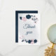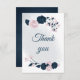 Carte De Remerciements élégante marine & fleurs roses botanique