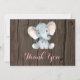 Éléphant Bébé Fille Mignon Rustique Rose et Gris Carte de Remerciement