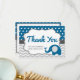 Dites merci à vos invités de douche avec cette jolie carte de remerciements à thème d'éléphant! La couleur de l'accent est modifiable à l'aide de l'outil de coupe-oeil. Les éléments correspondants peuvent être trouvés ici : http://www.zazzle.com/collections/elephant_baby_shower-119776196082552176