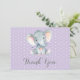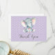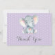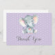 Carte De Remerciements Éléphant Mignon Bébé Fille Violet et Gris