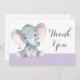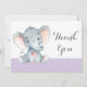 Carte De Remerciements Éléphant Mignon Bébé Fille Violet et Gris