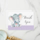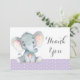 Carte de Remerciement Élégante Éléphant Bébé Fille Violet et Gris