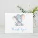 Carte De Remerciements Éléphant Mignon Bébé Garçon Bleu et Gris