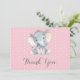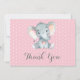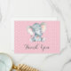 Carte De Remerciements Éléphanteau fille mignonne rose et gris