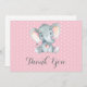 Carte de remerciement éléphanteau fille mignonne rose et gris