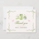 Cette carte de remerciement Elle a Trouvé Son Tasse de Matcha Parfaite présente de doux desserts matcha dessinés à la main, des tons pastel doux et des accents de ruban en forme de nœud, associés à une élégante écriture script pour un look féminin et mignon. L'illustration fantaisiste de style coquette et le thème ludique du matcha en font un élément de coordination charmant pour les réceptions de mariage au matcha, les célébrations de thé-parties et la papeterie girly pastel de la suite Perfect Matcha.