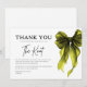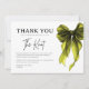 Exprimez votre gratitude avec ce style intemporel avec cette carte de remerciement de douche de mariée à nœud chartreuse She's Tying The Knot. Conçue avec un motif de nœud vert chartreuse chic et une typographie moderne et épurée, cette carte est la touche finale parfaite pour remercier vos invités après une douche de mariée, une célébration de fiançailles ou un événement de week-end de mariage.
