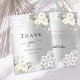 Un carte de remerciements moderne et élégant non photo. Un arrière - plan faux argenté. Décoré de roses blanches, fleurs florales et dentelle. Sur le devant le texte : Merci Retour : Modèle pour Votre note de remerciement et les noms.
