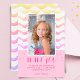 Colorful Rose Stars Birthday Kids Girl Photo Carte de remerciements. Carte de remerciements d'anniversaire rose mignon pour vos amis et votre famille. Téléchargez votre photo et personnalisez la carte avec votre nom et votre texte. La carte a des étoiles et des vagues colorées. Super comme carte de remerciements pour les filles.