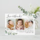 Un carte de remerciements photo moderne à l'eucalyptus. Les photographies des modèles sont à des fins d'illustration et peuvent être changées en votre propre nom. **VEUILLEZ LIRE AVANT DE COMMANDER** 1. Si vous effectuez des modifications et que la conception est rognée ou ne s'affiche pas correctement à l'écran, veuillez utiliser le service de conception en direct pour vous aider à la corriger. 2. Votre commande va directement aux imprimantes. Ce que vous voyez à l'écran est ce qui vous sera imprimé et envoyé. Veuillez vérifier trois fois si vous avez mal orthographié ou si vous avez mal renseigné avant de passer votre commande.