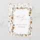 La conception de la carte de remerciement élégante pour la douche de mariée aux fleurs sauvages d'automne dégage une beauté intemporelle qui combine sans effort le charme des fleurs sauvages de l'automne avec la grâce de la calligraphie élégante. Les courbes fluides et les traits gracieux des lettres évoquent un sentiment d'élégance intemporelle, ajoutant une touche de sophistication et de raffinement au design. Une palette de couleurs inspirée par la saison automnale rehausse la beauté de la carte. Cette carte sert non seulement de témoignage de gratitude, mais aussi de souvenir qui célèbre l'union de la splendeur de la nature et de l'art de l'expression sincère. Articles assortis disponibles.