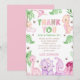 Carte De Remerciements Fête d'anniversaire 1 an fille dinosaure aquarelle