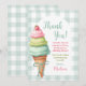 Carte de remerciement pour une fête d'anniversaire à la glace avec un nœud bleu et gingham