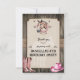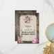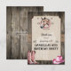 Montez en selle et galopez pour une fête d'anniversaire amusante sur le thème de l'équitation. Un fond en planches de bois suggère l'intérieur d'une écurie avec un panneau maintenu par des sangles en toile de jute. Le panneau de couleur crème porte un filigrane représentant un cheval. En haut, un cheval regarde à travers un fer à cheval pour remercier les invités de participer à une journée amusante avec les chevaux. Une paire de bottes roses et un chapeau de cowboy sont placés vers le bas de la carte avec des ornements de style western accentués dans le design. Disponible avec des produits assortis.