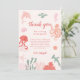Joli rose sous le thème de la mer fête d'anniversaire merci carte de modèle avec l'illustration des créatures océaniques.