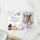 Surprenez vos amis et votre famille avec un merci qu'ils n'oublieront pas ! La fête d'anniversaire Halloween Spooktacular de votre enfant est le moyen idéal pour montrer votre gratitude pour leur journée spéciale et leurs cadeaux. Avec une photo, ainsi que de belles images aquarelles de citrouilles, d'araignées, de chauves-souris, de sorcières, de chats et d'étoiles, cette carte de remerciement est sûre de faire sensation.