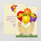 De mignons canetons jaunes et quatre ballons multicolores embellissent la face avant de ce modèle de carte de remerciement. Les ballons sont positionnés en haut à l'arrière. Vous pouvez personnaliser les champs de texte pour l'avant et l'arrière, supprimer le texte ou le modifier en utilisant les options de conception pour choisir la police, la couleur et la taille qui vous plaisent. Vous pouvez l'aimer ou l'épingler pour le retrouver plus tard.