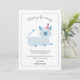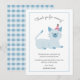 Carte de remerciement de fête d'anniversaire mignonne pour la fête sur le thème du chat de votre enfant. Illustration d'un chat bleu avec un sourire sur son visage portant un chapeau de fête. Le texte ci-dessus dit "merci d'être venu !" et le texte ci-dessous entre dans plus de détails en remerciant l'ami d'avoir assisté à l'événement et pour le cadeau qu'il a apporté. Vous pouvez ajouter le nom de votre enfant en bas. Les textes sont facilement modifiables en ligne.