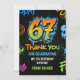 Carte de remerciement pour la fête d'anniversaire Six Sept Enfants 7 ans Graffiti Néon