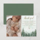 Une carte de remerciement de fête de bébé de la forêt de pin sylvestre rustique et élégante qui peut être personnalisée avec une photo spéciale de votre petite arrivée. Conçue par Thisisnotme©