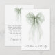 Carte de remerciement élégante pour une fête de mariage avec une belle illustration à l'aquarelle d'un nœud coquette vert sauge clair et "avec amour et remerciements" dans un script chic. Au verso, personnalisez votre message de remerciement et ajoutez votre nom dans un script ressemblant à une signature, ou laissez vide pour une note manuscrite.