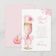 Carte de Remerciement Fête de Mariage au Prosecco aux Pétales de Rose avec un verre à prosecco doré et rose orné de délicates fleurs roses et d'un ruban rose. Le design est parfait pour un brunch chic sur le thème des Pétales et du Prosecco et une célébration pétillante.