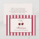 C'est la cerise sur le gâteau ! Célébrez les prochaines noces de votre future mariée préférée avec style avec nos cartes de remerciement pour fête de mariage sur le thème de la cerise inspiré des vintage ! Ces cartes présentent de belles cerises aquarelles avec un nœud blanc sur un fond rayé.