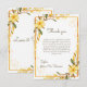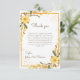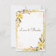 Cette carte de remerciement pour une fête de mariage présente un design chaleureux et élégant avec des florales jaunes délicates et une verdure douce encadrant la carte. Les fleurs aquarelles et les détails botaniques subtils lui donnent une sensation légère et romantique, tandis que la bordure dorée ajoute une touche de raffinement sans paraître formelle ou lourde. La mise en page est propre et aérée, laissant suffisamment d'espace pour que votre message sincère brille. Parfaite pour les célébrations de printemps ou d'été, cette conception est gaie, gracieuse et intemporelle. Une belle façon de remercier les êtres chers d'avoir partagé un moment si significatif.