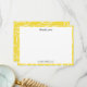 Exprimez votre gratitude avec style grâce à ces cartes de remerciement jaunes joyeuses présentant une conception de bordure de ligne abstraite. Parfaites pour les mariages, les fêtes ou toute occasion, ces cartes ajoutent une touche personnelle avec un texte personnalisable. Que vous les envoyiez pour une fête de mariage ou une célébration d'anniversaire, leur look vibrant mais élégant les rend idéales pour répandre la joie et la gratitude à vos invités.