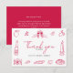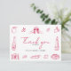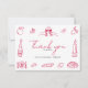 Les cartes de remerciement pour enterrement de vie de jeune fille "Retro Modern Hand Drawn Quirky Bridal Shower Thank You Cards" présentent un design ludique d'inspiration italienne avec une mise en page propre et élégante. La carte met en valeur de charmantes illustrations en ligne rouge telles que des verres à vin, une bouteille de vin, des tranches de pizza, du pain, du fromage, des agrumes, des olives, une bougie et une tasse à café. Le style simple dessiné à la main ajoute de la chaleur et de la personnalité tout en gardant le design moderne et minimal.